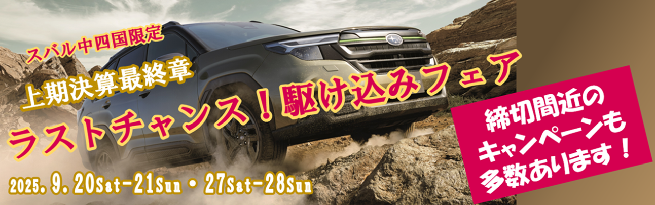 スバルでは上期決算最終章ラストチャンス駆け込みフェアを行っています!