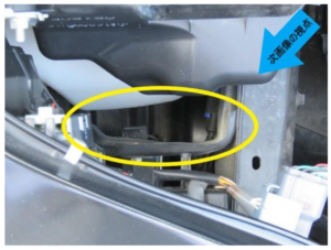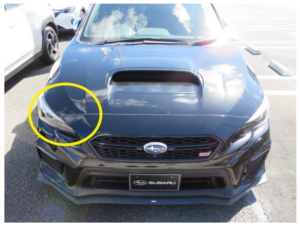 右フェンダーを介したダメージがこのパーツに波及したことで少し変形しており、修復歴となりました。