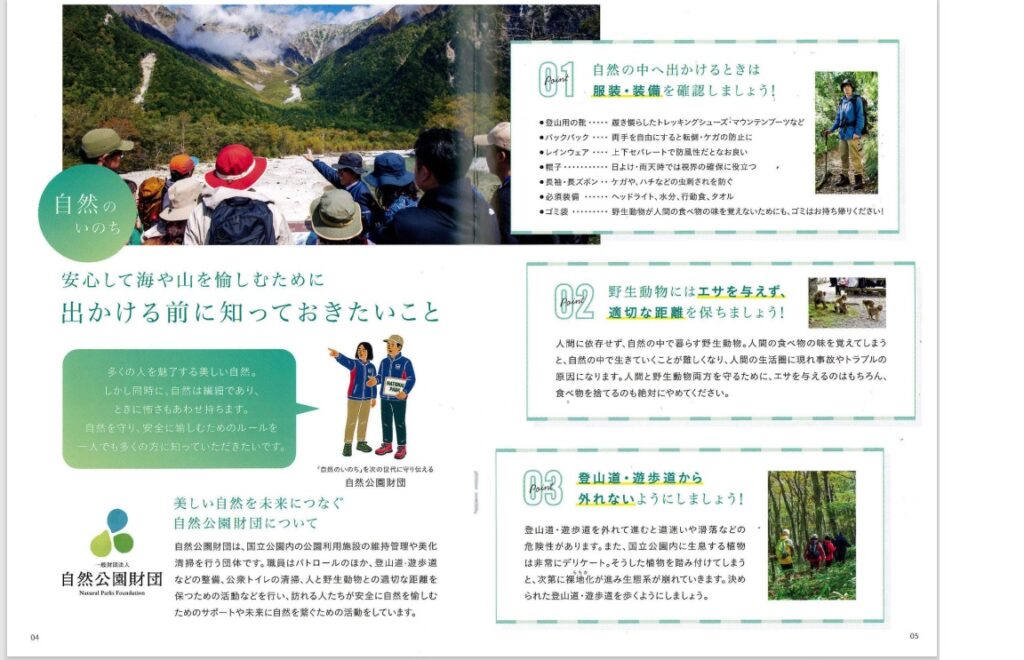 登山やハイキングをされる方のいのちを守るために国立公園のオフィシャルパートナーとして自然の命を守る活動を応援しています。その取り組みは全国に広がっています。