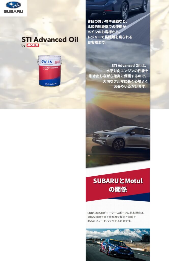 ↑入れてみませんか(^^♪?水平対向エンジンを採用するスバルボクサーエンジンのために専用チューニングを施したエンジンオイルがあります。過去にはカストロールやエルフなどのオイルを取り扱ってまいりましたが、現行型エンジン向け低年度化学合成オイルをご用意いたしました。