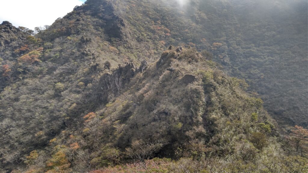 真ん中にありますゴジラの背びれみたいなところを歩いていきます。