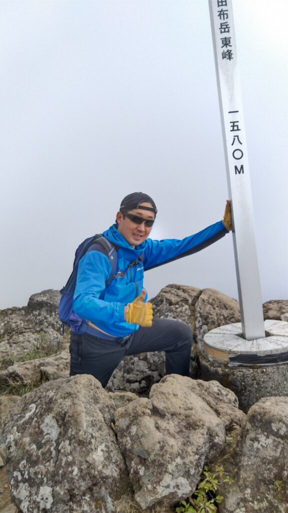 西側ピークに到着しました。残念ながら雲の中だったので視界は悪かったです。