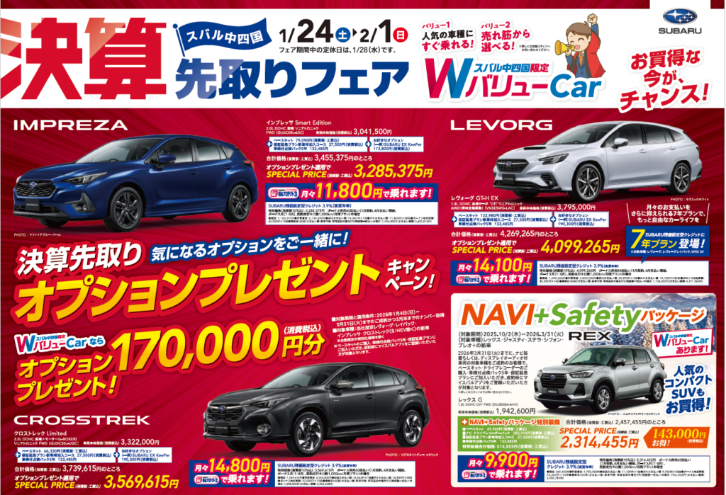 スバル中四国決算先取りフェアのご案内2026年01月12日