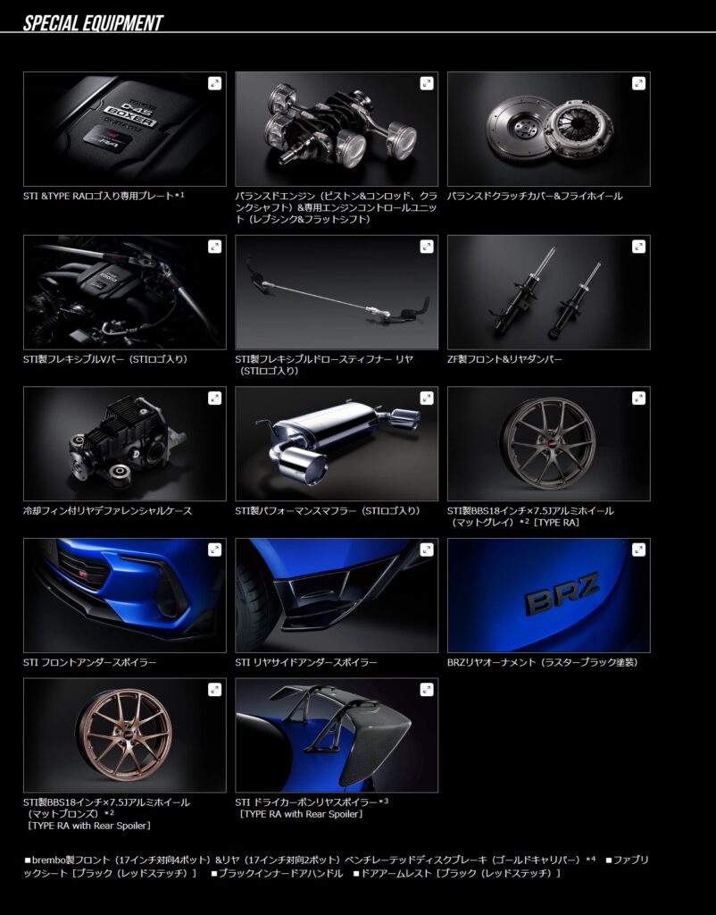 SUBARU BRZ STI Sport TYPE RAならではの専用装備を装着。