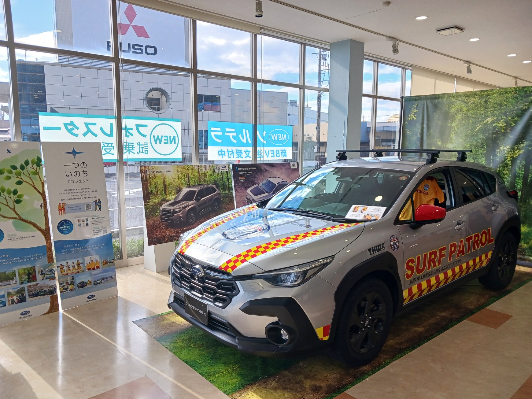 さて、話は変わり周南店では現在ライフセーバーカーという海で「人のいのちを守る」車を展示しています。