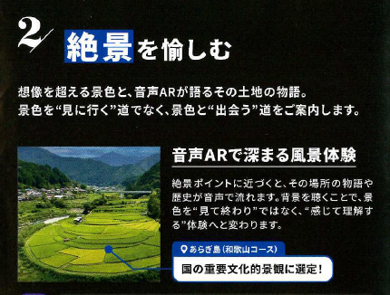 スバロードでは、景色を”見に行く”道ではなく、景色と”出会う”道をご案内します。その土地の歴史や物語を音声ガイドが解説してくれる「音声ARで深まる風景体験」、一見遠回りでも走り切った先には息をのむ眺望が待っている「回り道の先にある、非日常的な景色」など新たな景色との出会いを演出してくれます!