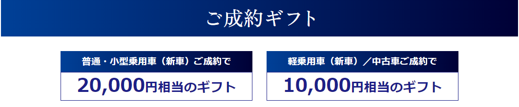 期間中に対象車種をご成約頂いたお客様皆様にご成約ギフトをお送りします!