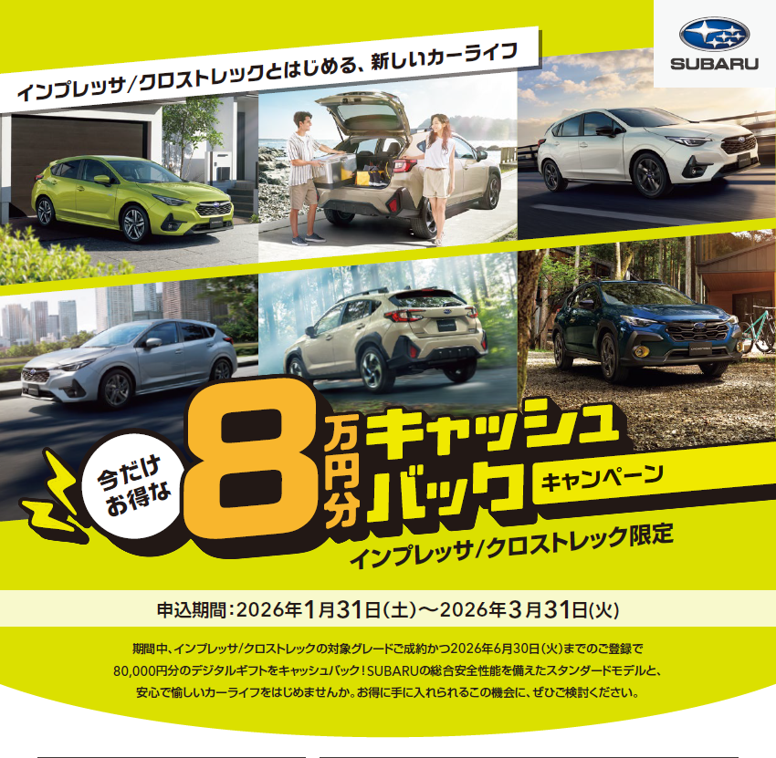 中でもインプレッサ/クロストレックを検討中のお客様には併せてこちらのキャンペーンもおすすめです!