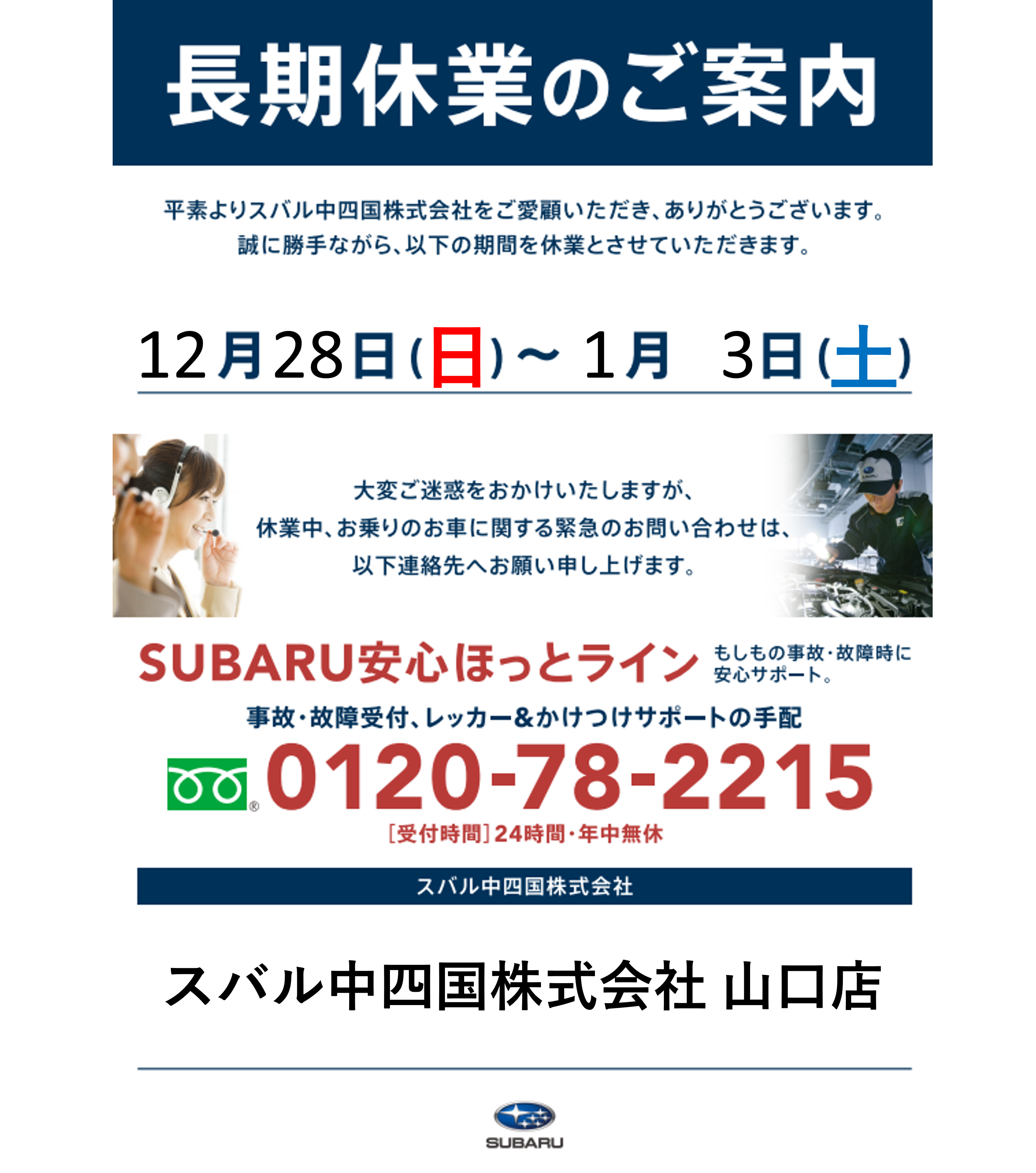 2025年もスバル中四国山口店をご愛顧頂きましたこと、