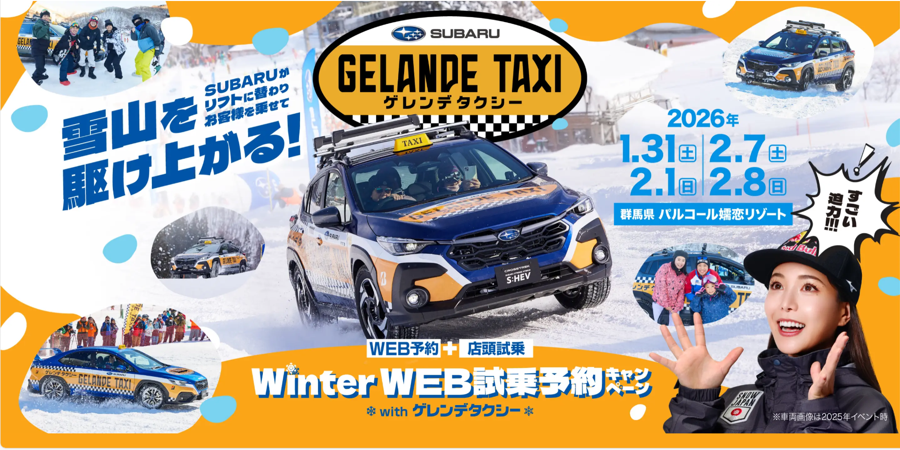 ただいまスバルではWEBページから試乗ご予約されたお客様の中から五名様に豪華景品が当たるGELANDE TAXI 2026キャンペーンを実施中です!