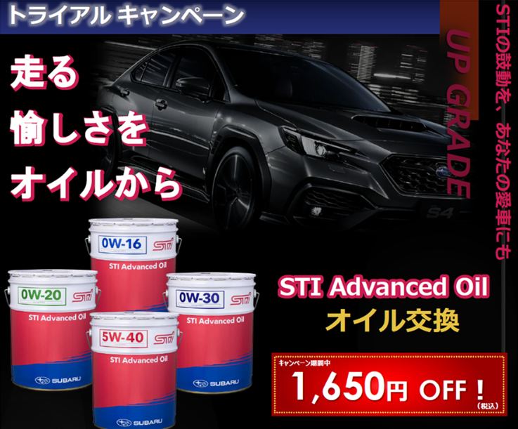 3/31(火)までの期間限定でSTI Advanced Oilオイル交換を1,650円(税込)OFF!