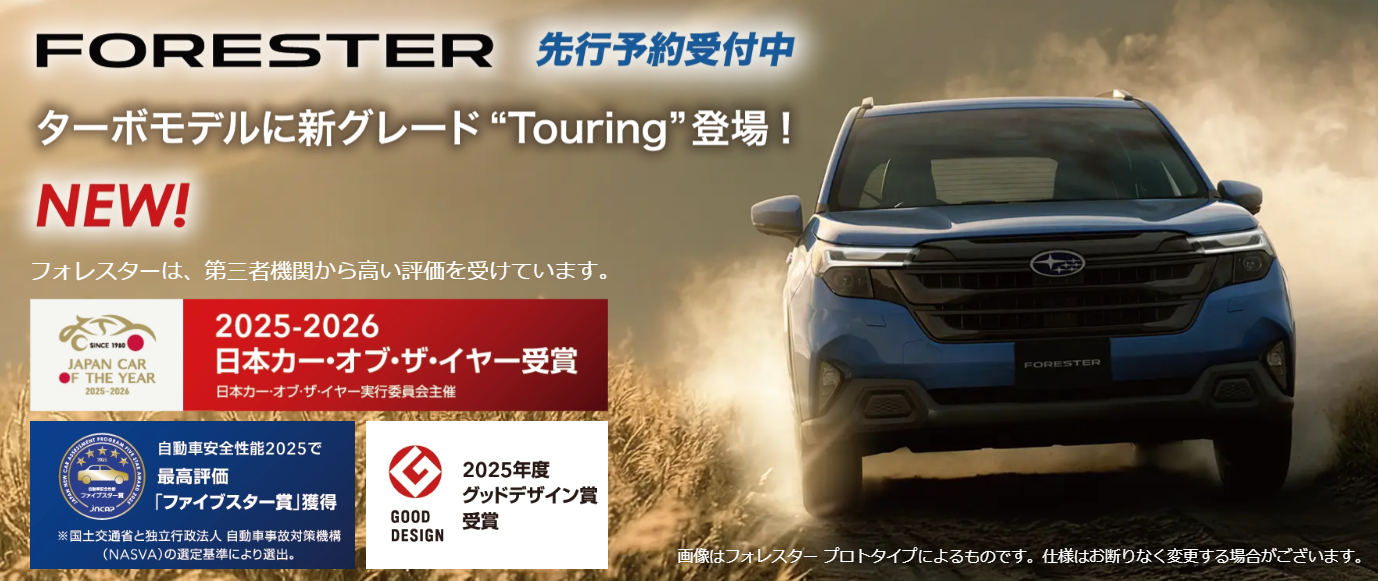 フォレスターにNEWグレード「Touring」が登場!昨年カー・オブ・ザ・イヤーを受賞したフォレスターが今年早くもさらなる進化を遂げて現れます!