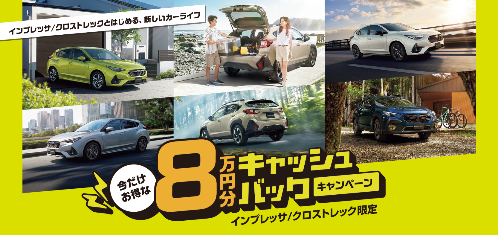 期間限定でインプレッサ/クロストレックをご成約頂いたお客様へ8万円分のデジタルギフトをキャッシュバック中!